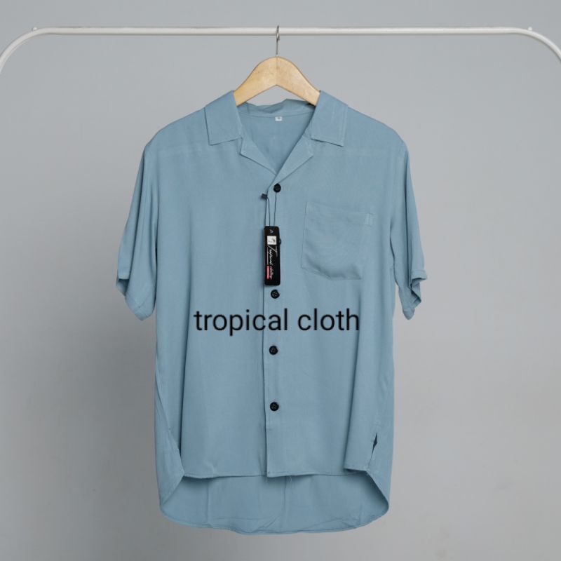 Detail ~KEMEJA POLOS LENGAN PENDAK HAWAIAN CLASSIC SHIRT KEMEJA PANTAI RAYON kemeja krah piama pria