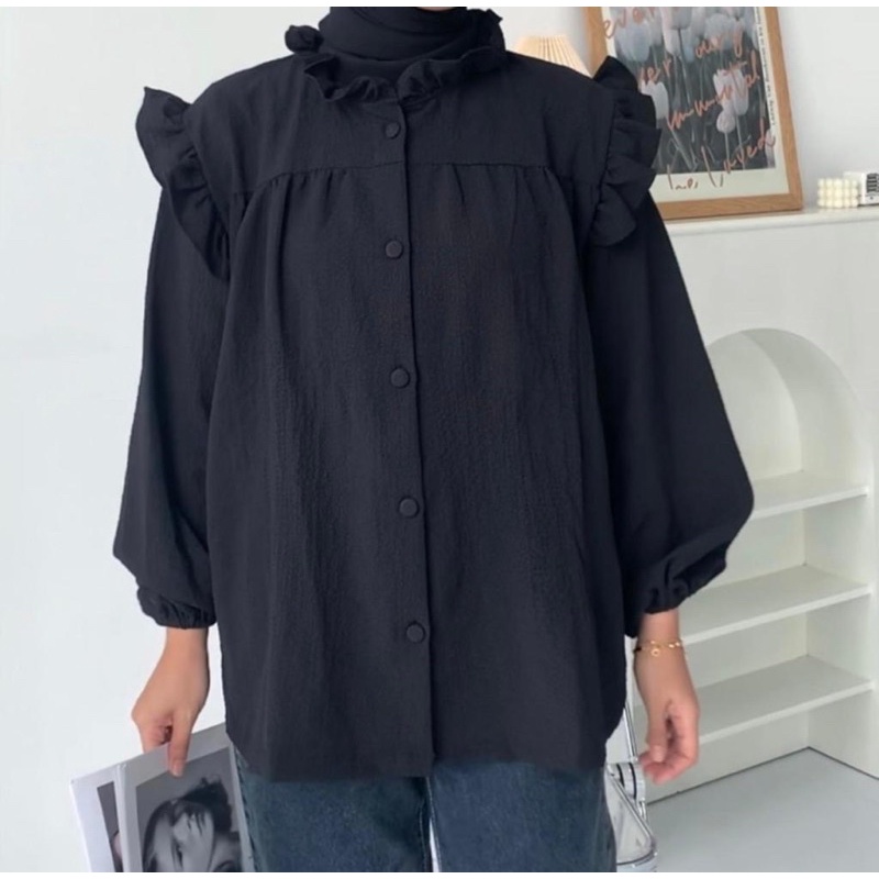 Detail Kemeja Polos Wanita Rayon Twill Biya Blouse Atasan Wanita Full Kancing Kerah Rempel OOTD Remaja Terbaru