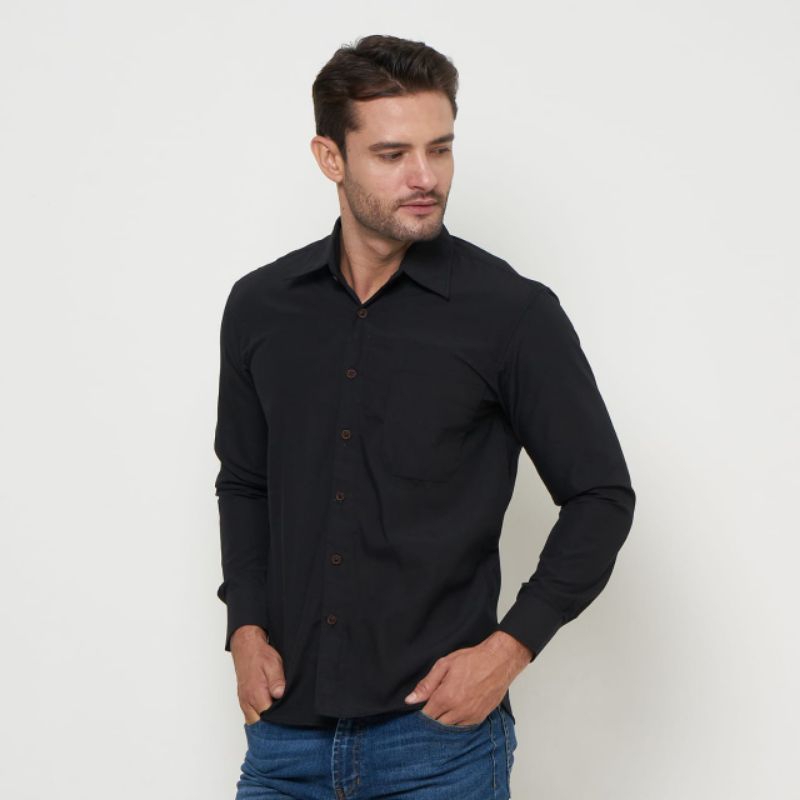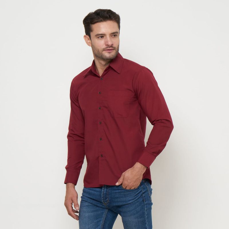 Detail Kemeja Pria Basic Polos Slimfit Lengan Panjang Katun Premium