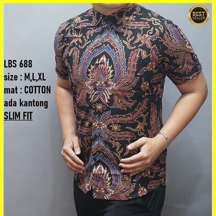 Pakaian Pria > Pakaian Tradisional > Atasan > KEMEJA PRIA BATIK LENGAN PENDEK HEM BAHAN KATUN HALUS 40S LBS 688 MEWAH PREMIUM BAJU ELEGANT SIZE M L XL SKU MS JAKARTA