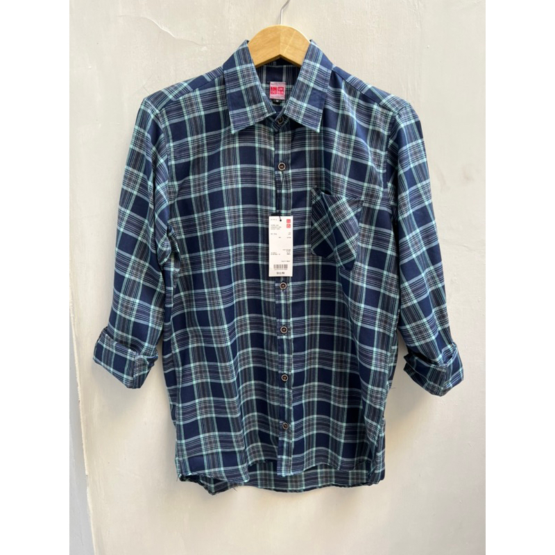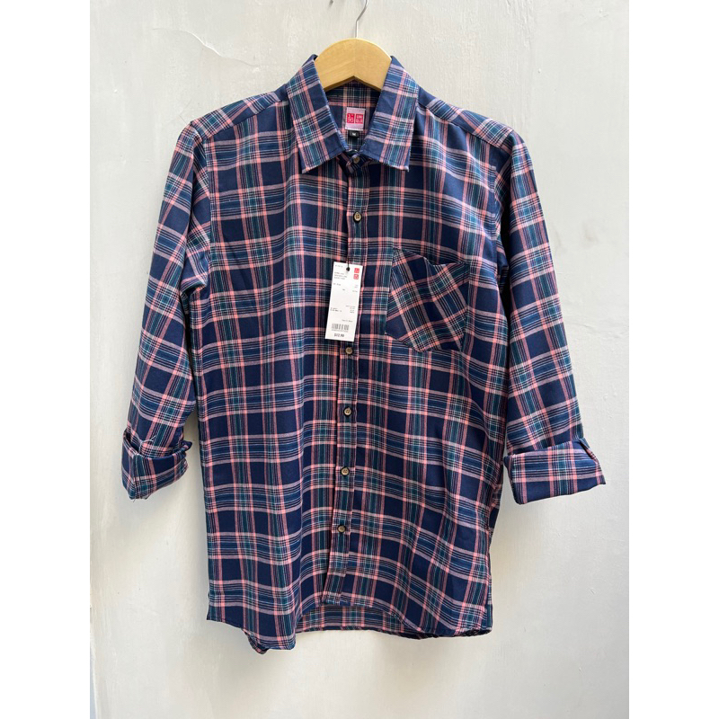 Detail kemeja pria flanel uni qlo kemeja casual pria tidak berbulu bahan adem tanpa polister