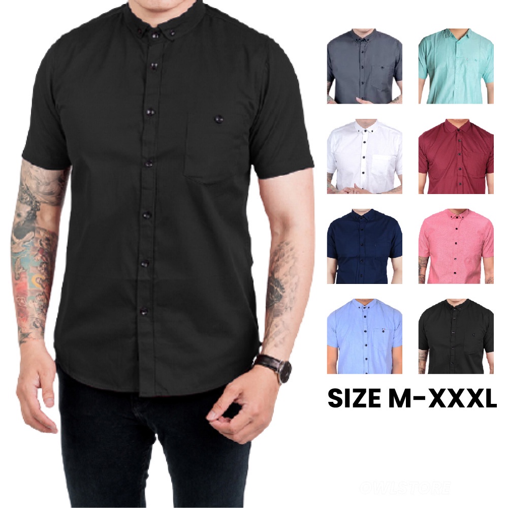Kemeja Pria Lengan Pendek Baju Hem Cowok Polos Putih Hitam Kasual jumbo Big Size Kerja Kantor MurahKemeja Pria Lengan Pendek Baju Hem Cowok Polos Putih Hitam Kasual jumbo Big Size Kerja Kantor Murah