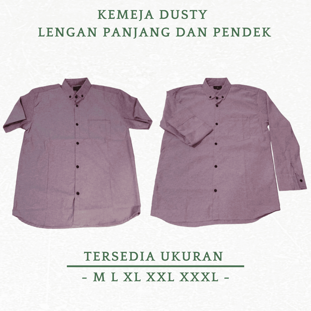 Detail kemeja pria polos dusty lengan panjang dan pendek premium kain oxford ospot slimfit kasual