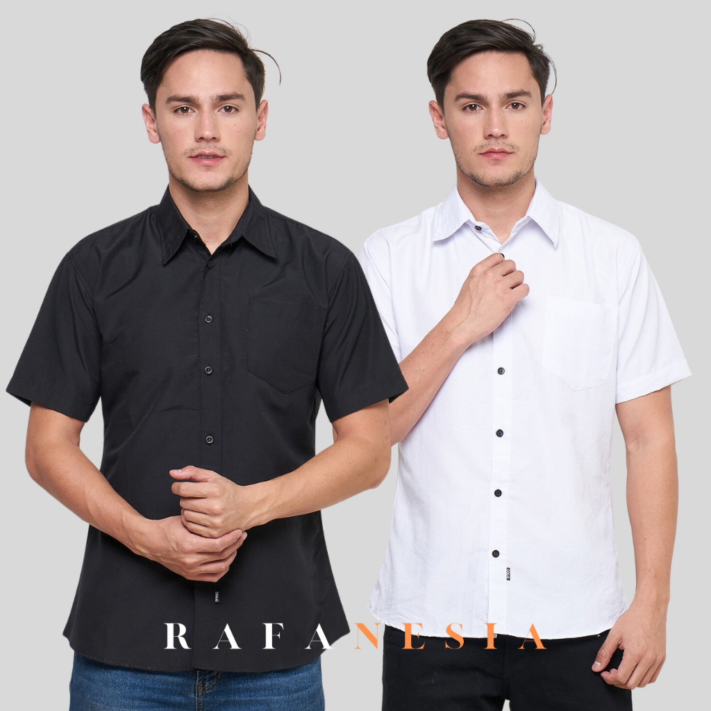 Detail Kemeja pria polos lengan pendek putih distro formal