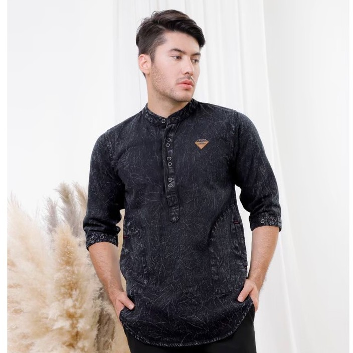 KEMEJA PRIA QURTA DENIM JEANS KOKO PAKISTAN 3/4 SIZE M.L.XL