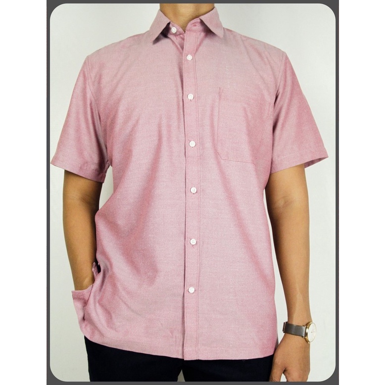 Detail Kemeja Pria Reguler Stanley Adams Lengan Pendek Merah Muda Polos 24 | Hem Pria Reguler | Kemeja Branded Original 100% Matahari