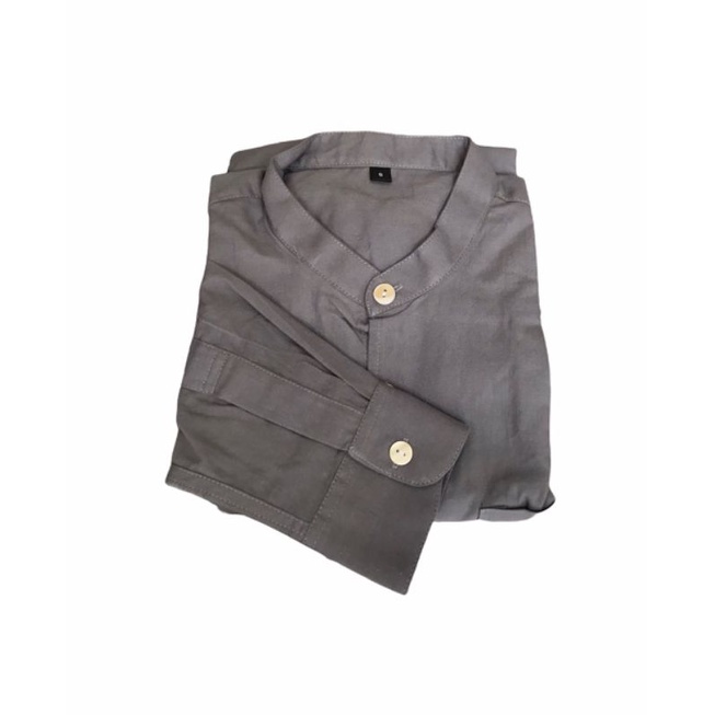 kemeja pria,bahan semi linen dengan kancing kerah,lengan panjang,model kerah sanghai.