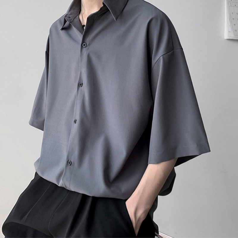Kemeja Pria Lengan Pendek oversize kemeja korean style Putih Polos Premium Distro Kasual Kerja Warna White Korea kemeja putih lengan pendek Atasan pria terbaru2023