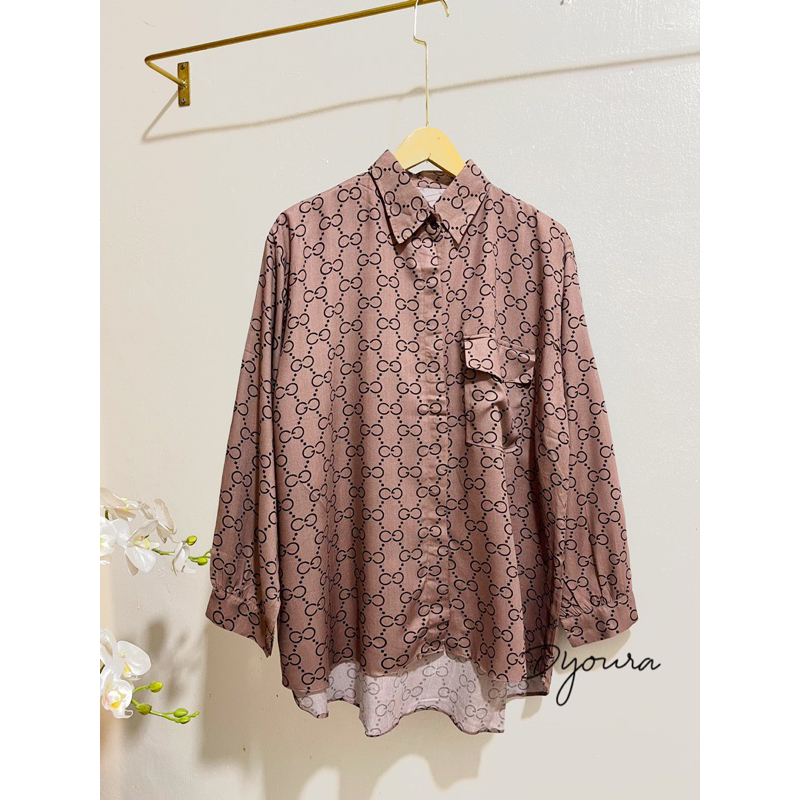 kemeja Rayon basic oversize motif Gg shirt / Kemeja gg terbaru/ kemeja lengan panjang / kemeja wanita motif gg