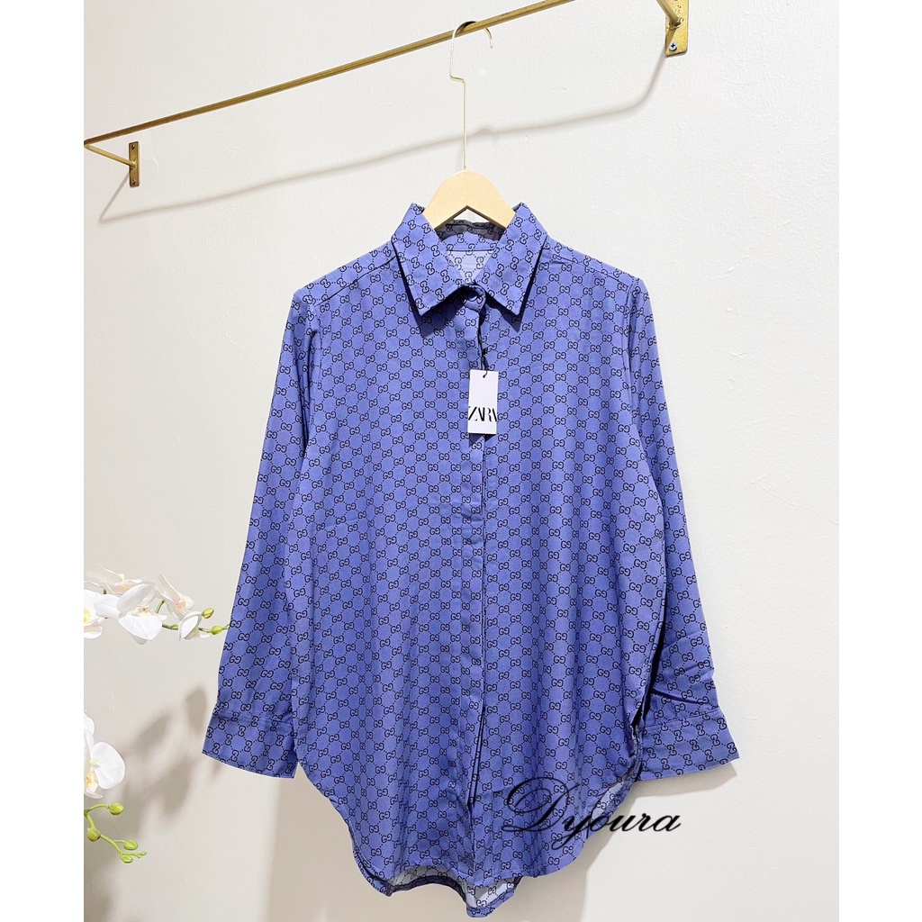 Pakaian Wanita > Atasan > Kemeja & Blouse > kemeja Rayon basic oversize motif Gg shirt / Kemeja gg terbaru/ kemeja lengan panjang / kemeja wanita motif gg