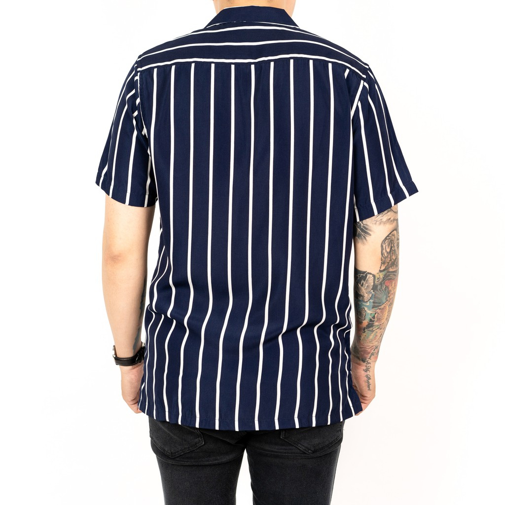 Detail Kemeja stripe pria lengan pendek / Kemeja Salur Lengan Pendek