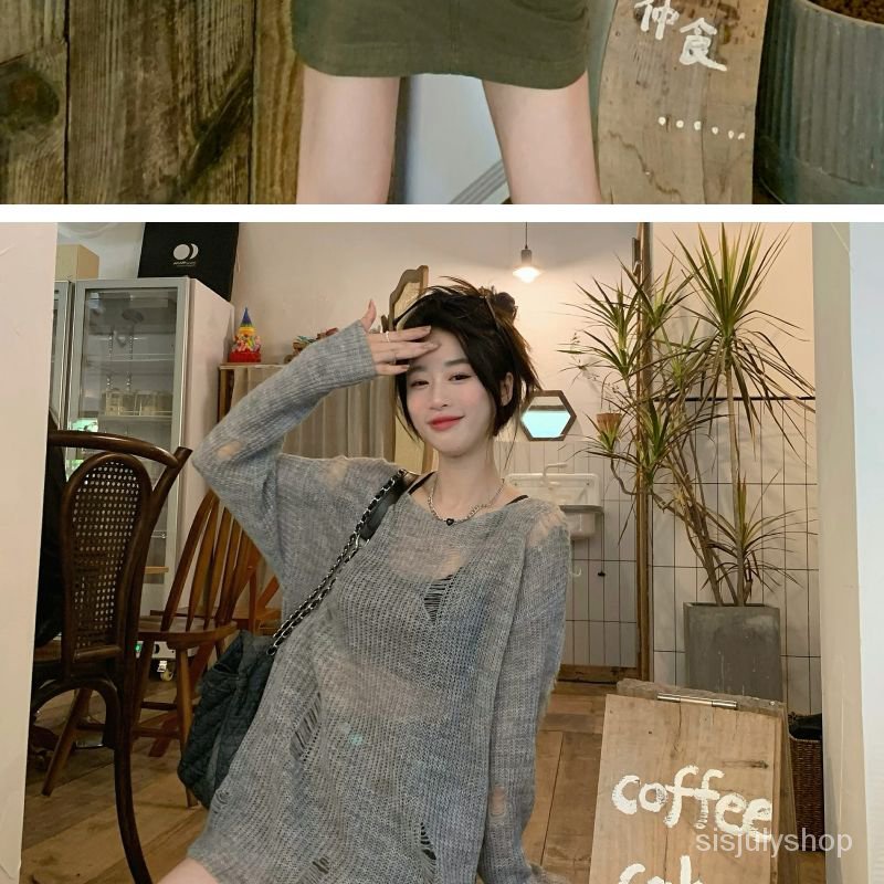 Detail Kemeja tabir surya rajut spring hollow pakaian wanita atasan luar tipis