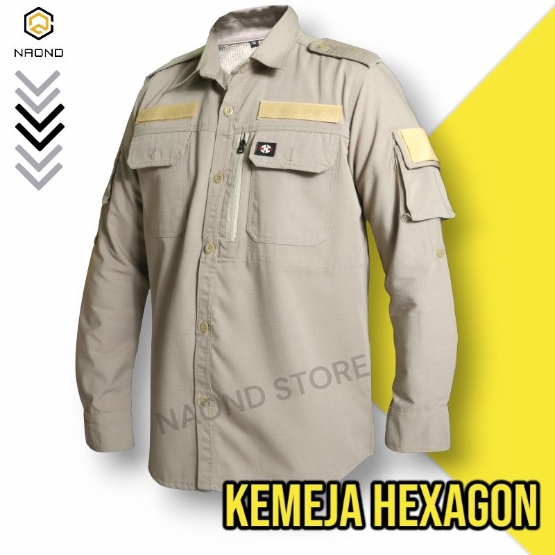 Detail Kemeja Tactical Hexagon Bahan ripstok / Kemeja Hexagon / Kerja Lapangan / Kemeja Hekagon Tangan Panjang / Kemeja PDL / Kemeja outdoor