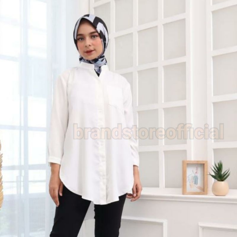 Detail KEMEJA TUNIK POLOS WANITA SHAKILA BOTTEGA ATASAN MUSLIM KASUAL TERKINI
