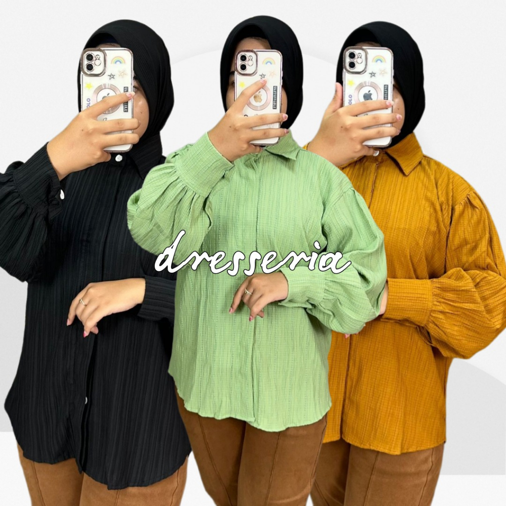 KEMEJA WANITA MODEL LENGAN BALON BAHAN BABY CRUSH LD 120 PANJNG 75 PANJNG LENGAN 55
