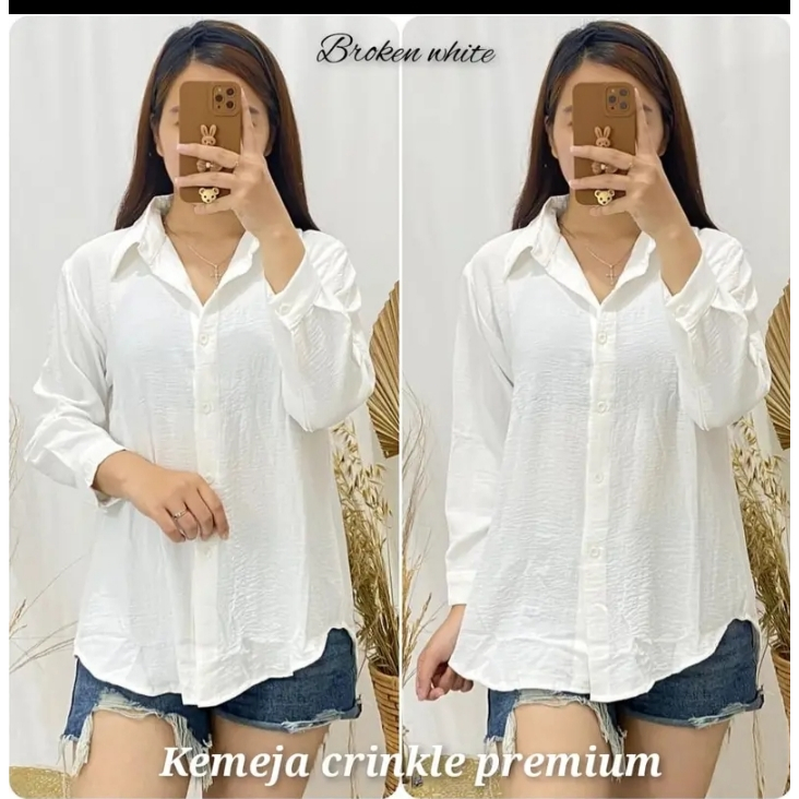 DETAIL KETERANGAN KEMEJA WANITA > BAHAN IMPORT CRINKLE PREMIUM> BAHAN TIDAK TIPIS DAN TIDK NERAWANG>100% REAL PICT >PRODUK KAMI SENDIRI YANG FOTO SEHINGGA YANG DI GAMBAR SAMA DENGAN YANG AKAN DI KIRIM) > LD M 95 (Pb 65cm) > LD L 100 (Pb 65cm) > LD XL 110 (Pb 70cm) > LD XXL 116 (Pb 76cm) > LD 3XL 120 (Pb 76cm) >JAHITAN RAPI>BAHAN CRINKLE PREMIUM SEHINGGA TEBAL,HALUS, ADEM, DAN MENYERAP KERINGAT > KUALITAS BAGUS ANTI LENGKET > WARNA YANG CERAH ,LENTUR DAN TIDAK MUDAH LUNTUR