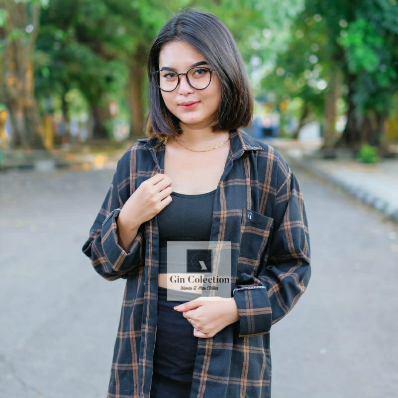 Detail Kemeja wanita flanel atasan flanel wanita lengan panjang wanita premium