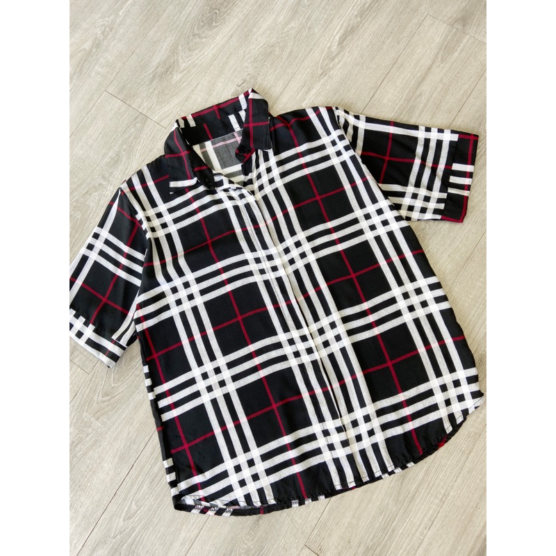 Pakaian Wanita > Atasan > Kemeja & Blouse > kemeja wanita kotak BB bahan rayon / kemeja rayon wanita / kemeja lengan pendek / kemeja casual kotak