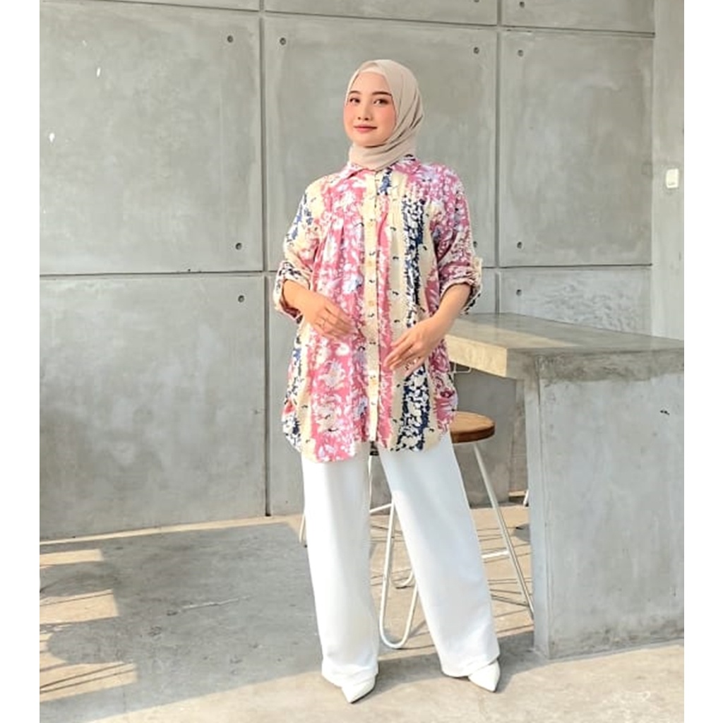 Detail Kemeja Wanita Oversize Kerut Dada Rayon Adem Busui Salem