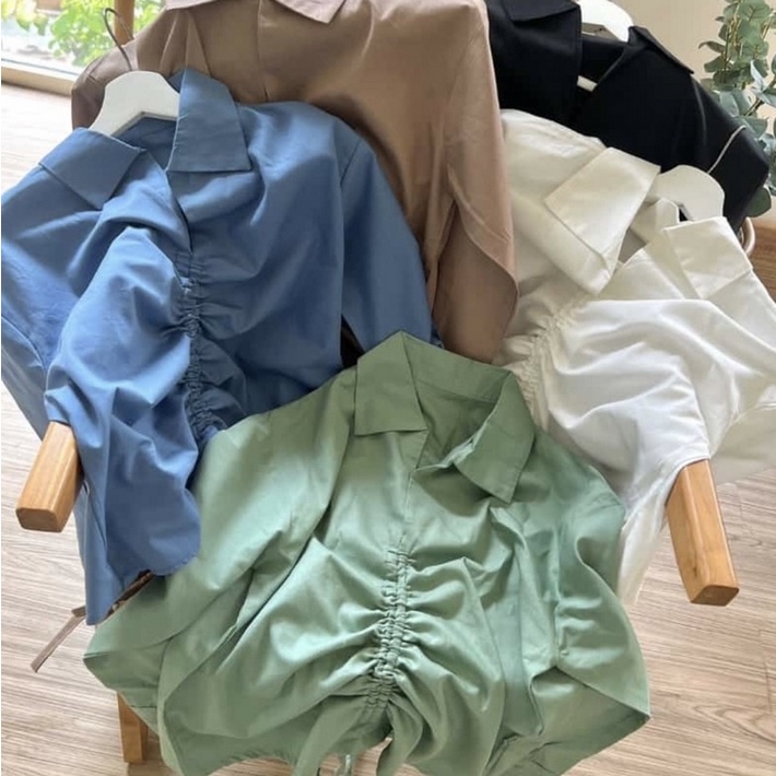 Detail Kemeja Wanita | Pakaian Wanita | Shirt Serut Katun | Kemeja Crop Kekinian Serut Vanya