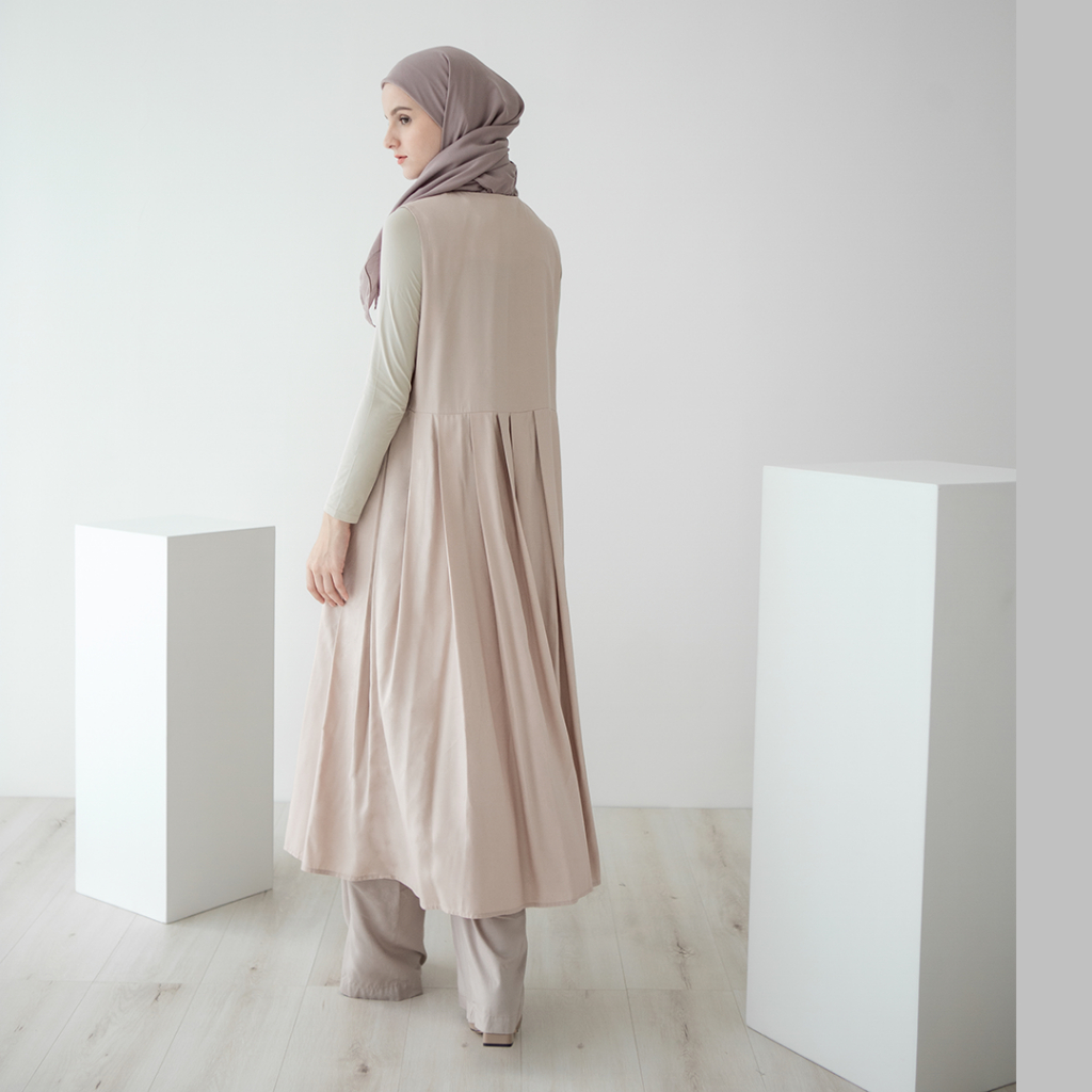 Fashion Muslim > Atasan Muslim Wanita > Tunik > Kencana by Aska Label - Sleeveless midi dress bahan rayon for petite, tunik panjang busui friendly warna beige, dusty pink, moss