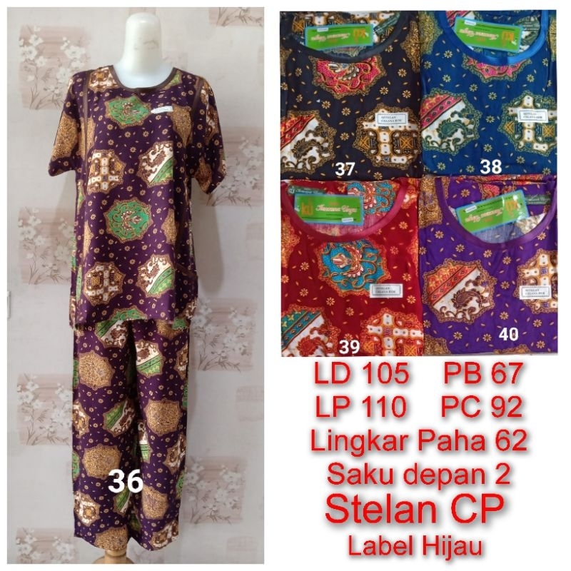 Detail Kencana Ungu Asli Setelan CP K2 LD 105-110cm Label Hijau Stelan celana panjang model kancing 2 Kencana Ungu label Hijau