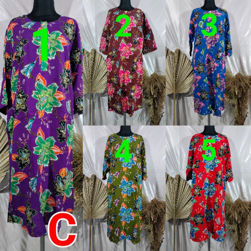 Kencana Ungu Daster 19 Label Biru. Tangan 3/4. 3 Kancig Hidup. 1 Saku di Kanan.