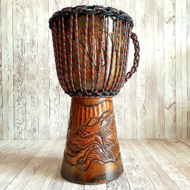 -Berat 5kg -Bahan Kayu Mahoni (Kuat dan Awet) -Bahan Kulit Kambing Asli -Tali Alpin Hitam -Tinggi 50 cm -Diameter 24-26 cm -Warna Merah, Coklat, Natural, dan Hitam -Motif Ukir / Deep Carving (spesial) -Finishing Glossy / Mengkilap -Kualitas Suara Standar untuk bermain Musik Perkusi