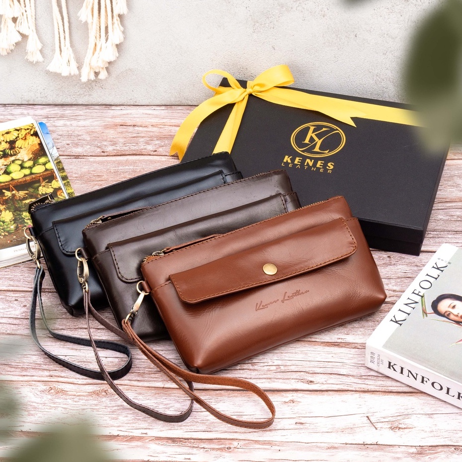 Detail Kenes Leather Clutch Tas Tangan Unisex Kulit Asli BARCA Pullup - Free Gravir Nama
