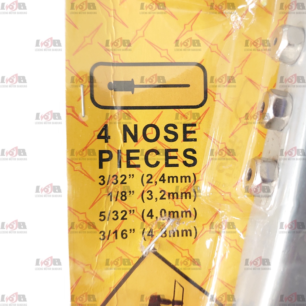 Dapat digunakan 4 ukuran paku rivet: - 2.4 mm - 3.2 mm - 4.0 mm - 4.8 mm
