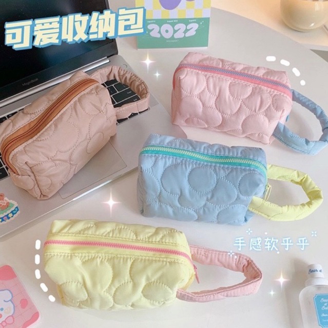 Detail KENSHO Kotak Pensil Sleting Motif Bunga Flower Handle Pastel / Pouch Makeup Aesthetic / Tas Aksesoris Wanita Lucu Import / Zipper / Flowers