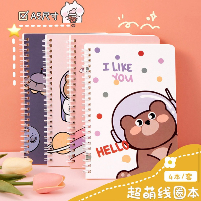 Buku & Alat Tulis > Buku Tulis & Kertas > Notebook & Notepad > KENSHO Notebook Buku Catatan A5 Spiral Ring Lucu Import-60 / Kertas Kuning / Kelinci Rabbit / Bear Beruang/ Buah Fruit