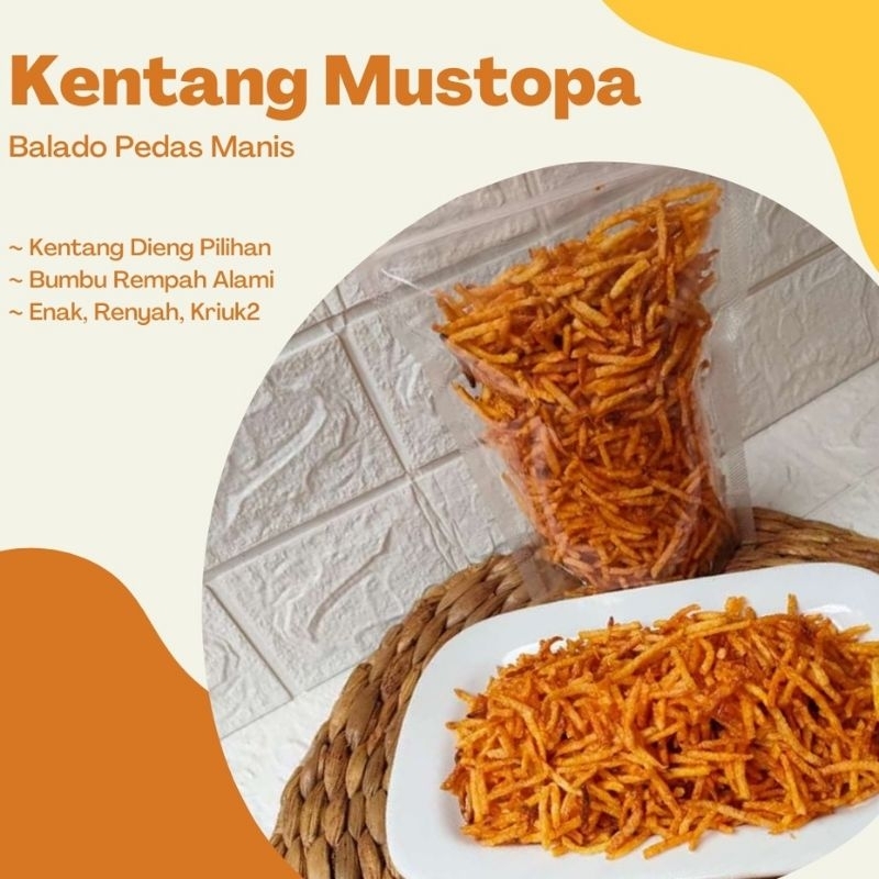 Kentang Mustofa Rumahan Di jamin renyah Manis,pedas,Gurih ๐ 100% Bahan alami ๐ Bumbu Rempah asli ๐ Terbuat Dari kentang Pilihan ๐ Tanpa pewarna ๐ Tanpa pengawet ๐ Exp 2 Bulan setelah kami kirimkan