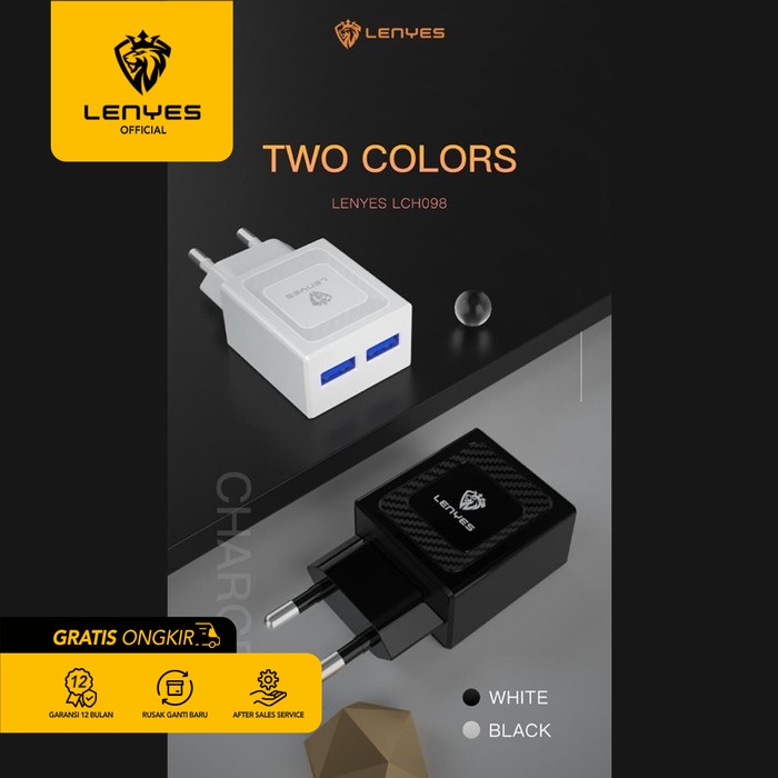 Handphone & Aksesoris > Kabel, Charger, & Konverter > Charger > Kepala Charger LENYES LCH098 12W 2.4A 2 USB Adaptor Original + Kabel - MICRO USB original kabel cable casan travel charger tc android usb charger micro usb type c batok kepala charger