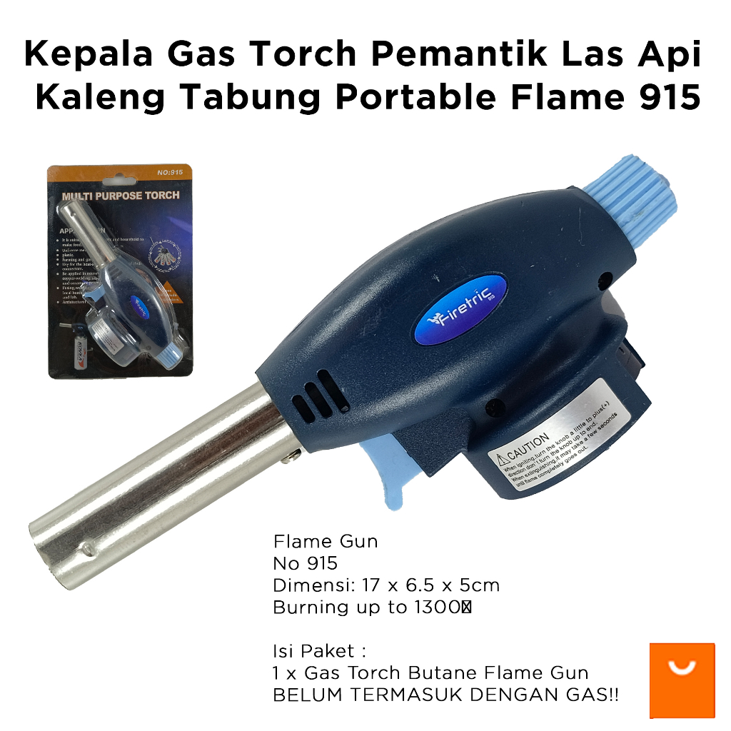 Gas Torch yang dapat di gunakan untuk tabung gas butana portabel yang mampu menghasilkan api dengan tekanan tinggi. Cocok untuk pemakaian di dapur untuk presentasi dari makanan, pesta BBQ untuk mendapat tekstur daging yang menarik.