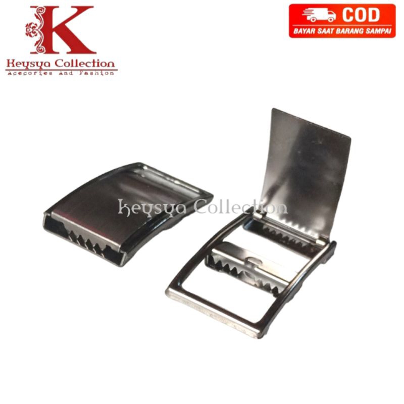 Detail kepala ikat pinggang kepala gesper pria wanita model jepit silet