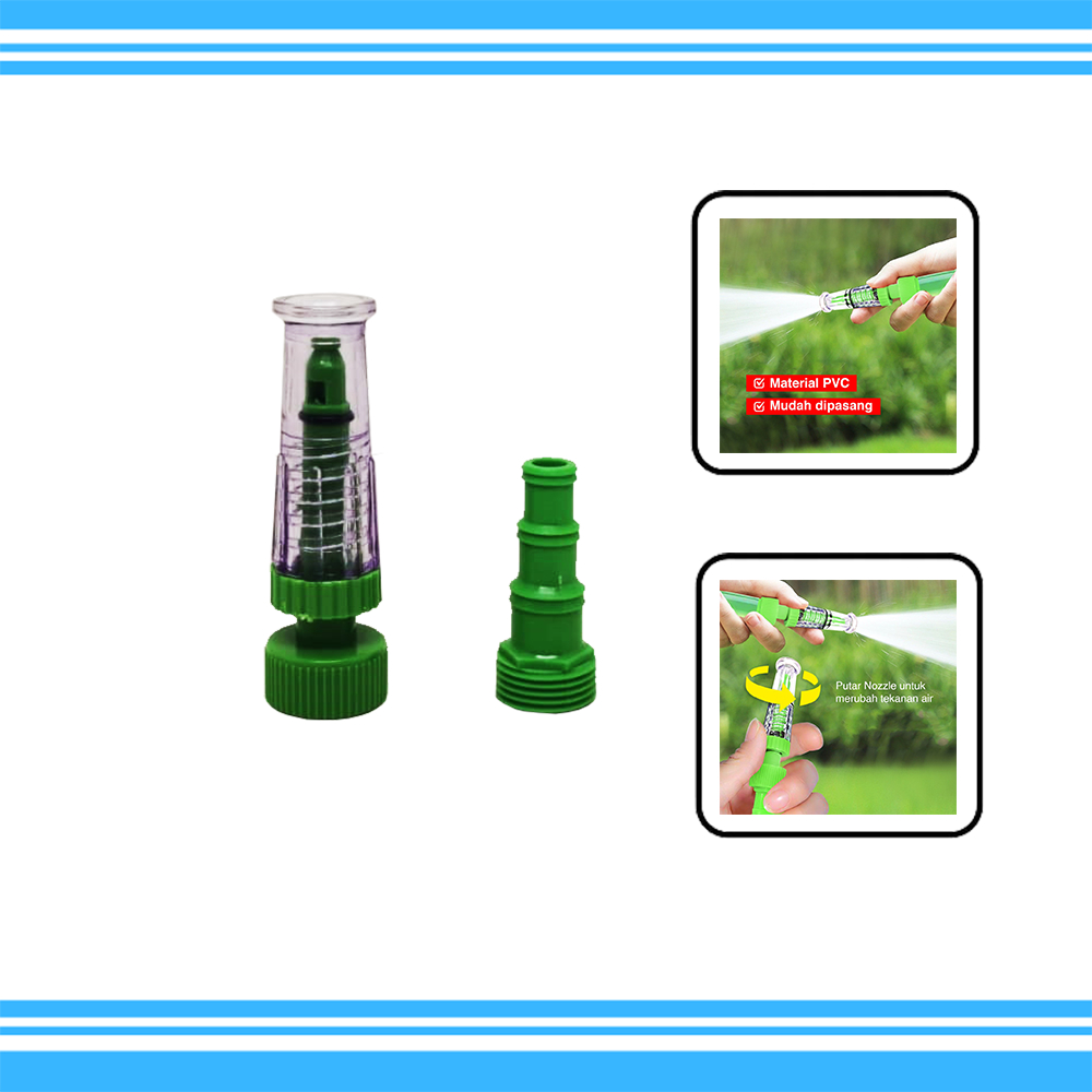 Spek : Merk : KENMASTER KM 9417 Bahan : PVC kualitas baik Ukuran : Panjang 15.5 Cm Warna : Hijau Fungsi : Memiliki daya sembur yang kuat Cocok untuk mem=ncuci kendaraan atau menyiram tanaman