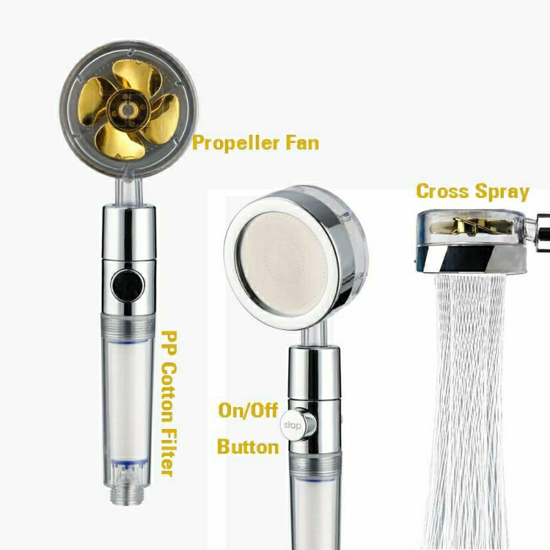 DESKRIPSI PRODUK : KEPALA SHOWER MANDI KIPAS 360 DERAJAT ON OFF TURBO FAN SHOWER FILTER / KEPALA KRAN MANDI BALING SARINGAN / HAND SHOWER TURBO / KEPALA KERAN KERAMAS