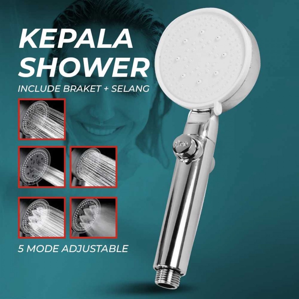 5 Mode Tekanan Air Shower ini hadir dengan 5 jenis mode pancuran air yang dapat Anda gunakan. Terdiri dari violent pressure mode yang memusatkan semprotan air di tengah, shower mode untuk yang mengalirkan air seperti shower pada umumnya, spray mode untuk merasakan semprotan layaknya spray yang lembut, soft mode 1 yang berfungsi seperti shower mode namun lebih lembut, dan soft mode 2 yang berfungsi seperti shower mode namun lebih kencang.