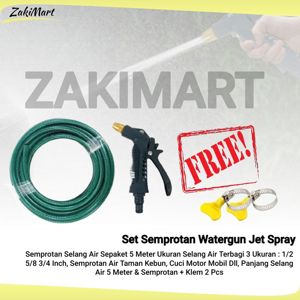 Semprotan Selang Air Sepaket 5 Meter Ukuran Selang Air Terbagi 3 Ukuran : 1/2 5/8 3/4 Inch