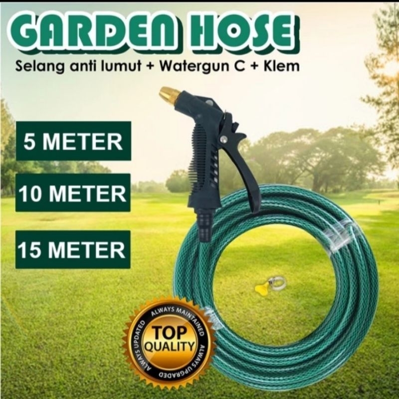 Semprotan Air Taman Kebun, Cuci Motor Mobil Dll Panjang Selang Air 5 Meter & Semprotan + Klem 2 Pcs