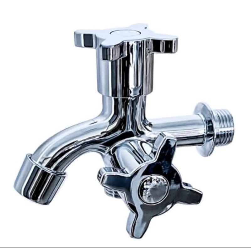 Perlengkapan Rumah > Renovasi Rumah > Bak Cuci Piring & Kran Air > Keran Cabang Double On / off - Kran Tembok Cabang Double - Kran Shower Double Kamar Mandi