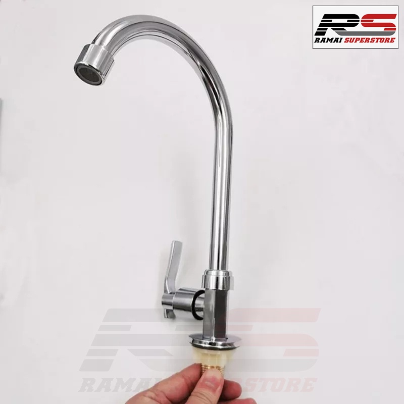 Fungsi : - Keran Cocok untuk di dapur tempat cuci piring - Leher Kran angsa bisa di putar 360 derajat - Model tanam / meja - Ukuran 1/2 Inch - Material Stainless Steel - Dijamin anti karat dan awet - Keluaran aliran air lebih halus