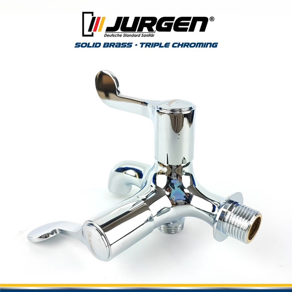Keran Kran Air Cabang Shower Bak Mandi Double Tembok Dinding Jurgen Kuningan Brass - Keran air dobel terbuat dari bahan solid brass kuningan (body dan jantung valve) - Konstruksi solid brass membuatnya lebih tahan terhadap korosi dan aus, sehingga dapat diandalkan - Ukuran 1/2 inch - Handle / Tuas sangat nyaman ( terbuat dari high Quality Zinc Alloy) -Terdiri dari dua katup dan dua saluran terpisah yang memungkinkan pengontrolan aliran air dari satu sumber dengan mudah.