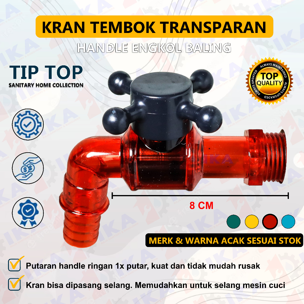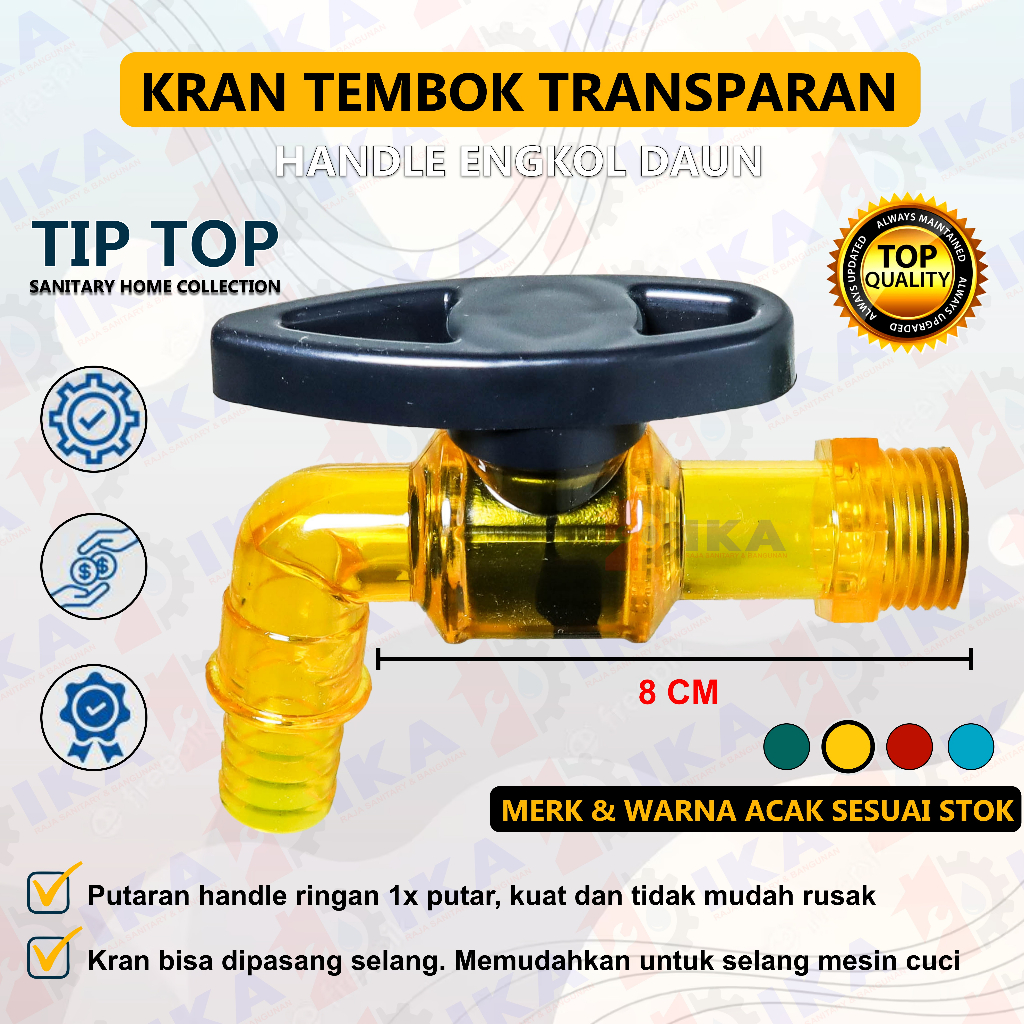 Kran Air Plastik Transparan - Brand : TIP TOP Original - Model : Baling Segi 3, engkol, baling dan daun - Ukuran Drat : 1/2 Inch - Harga : 1pcs - Material : PVC High Qualty Transparan - Warna : Dikirim Sesuai Stok (TIDAK BISA PILIH WARNA)