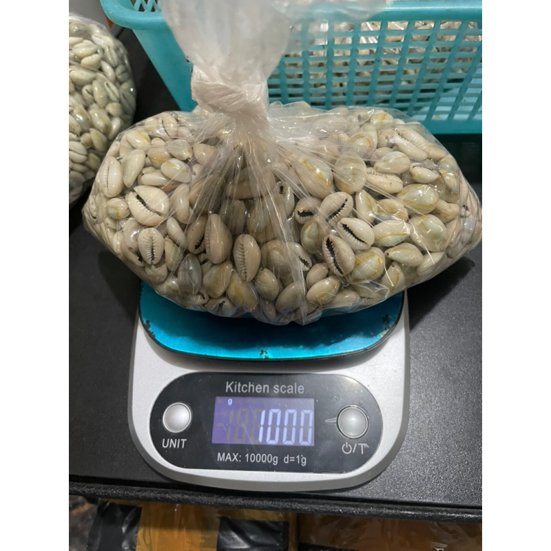 Kerang asli, biasa untuk permainan congklak. Harga dijual untuk 1kg. Ukuran 2-3cm(sedang)