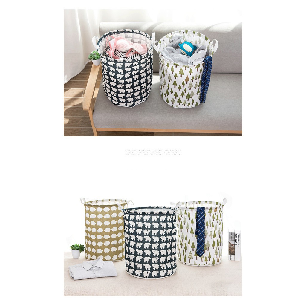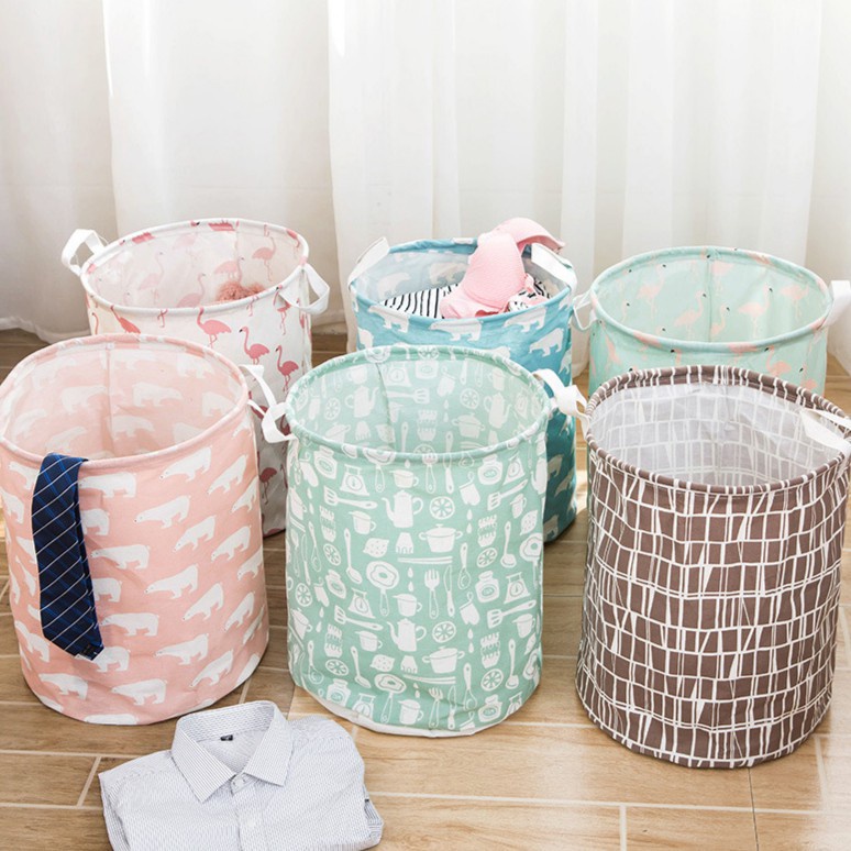 Keranjang terbuat dari bahan cotton linen, bahan cukup tebal dan anti air. Bahan bisa dilipat atau diberdirikan. Pada bagian atas keranjang terdapat lingkaran kawat besi Ruang dalam cukup luas, bisa muat banyak pakaian.