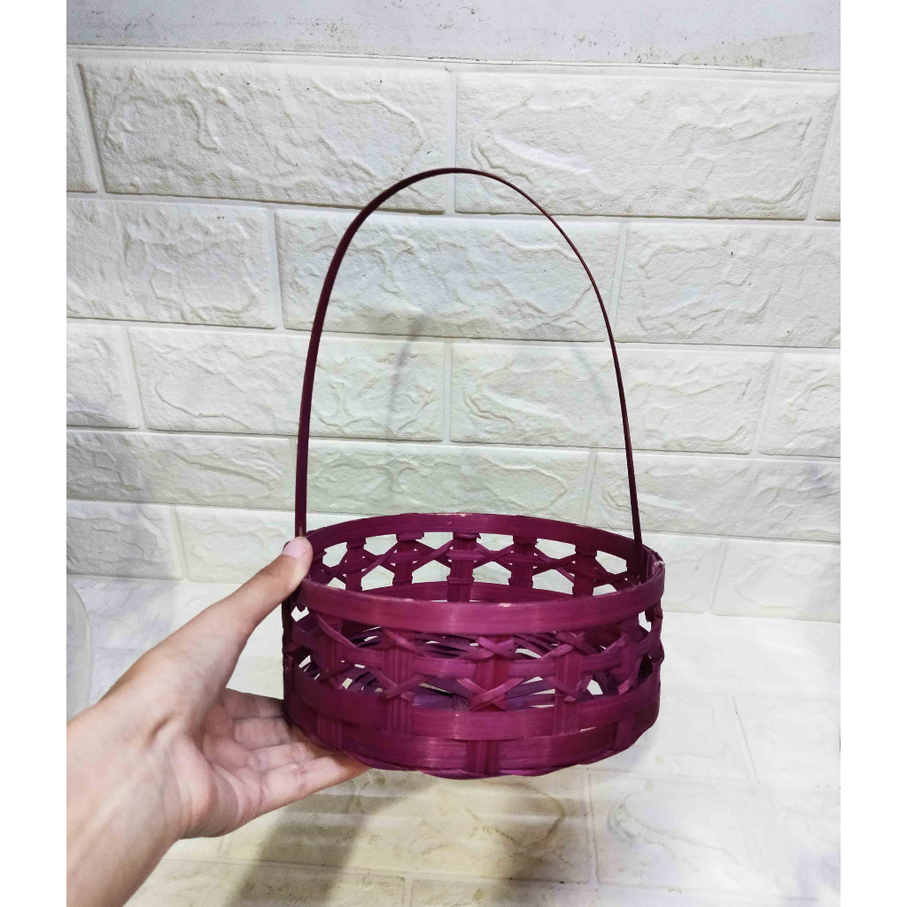 * Merah Polos Ukuran -/+ Tinggi beserta gagang = 25cm Tinggi keranjang = 7,5cm Diameter keranjang = 17cm Tidak memiliki hiasan (polos)
