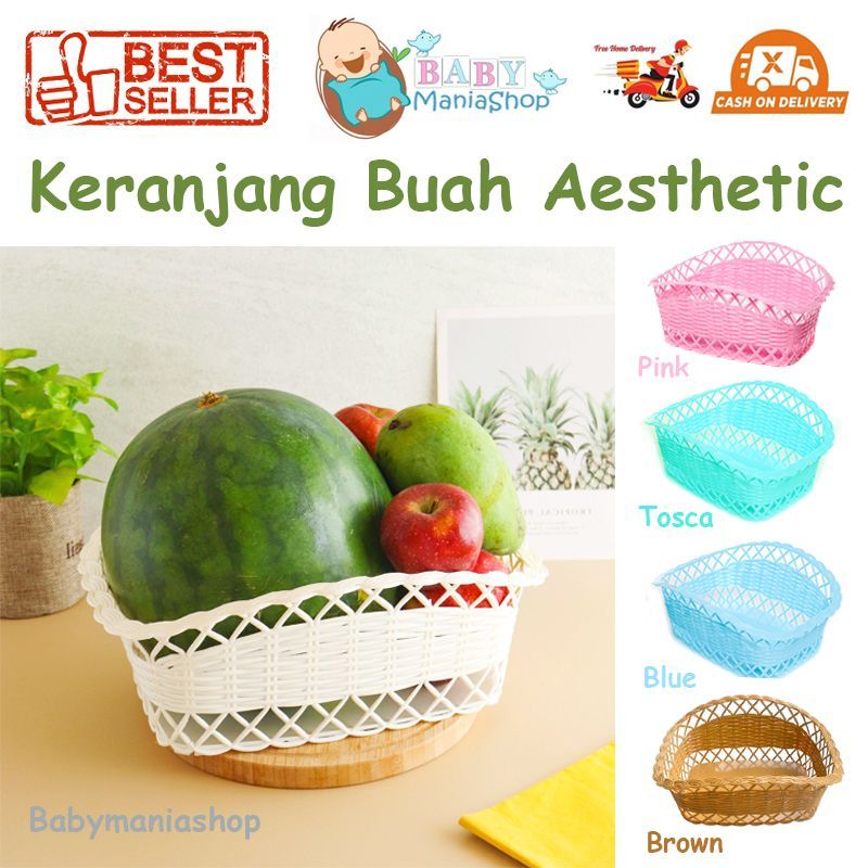 Perlengkapan Rumah > Organizer Rumah > Box, Tas, & Keranjang Penyimpanan > KERANJANG BUAH PLASTIK AESTHETIC SERBAGUNA TEMPAT BUAH PARCEL HAMPERS WARNA PASTEL SHABBY CHIC ESTETIK