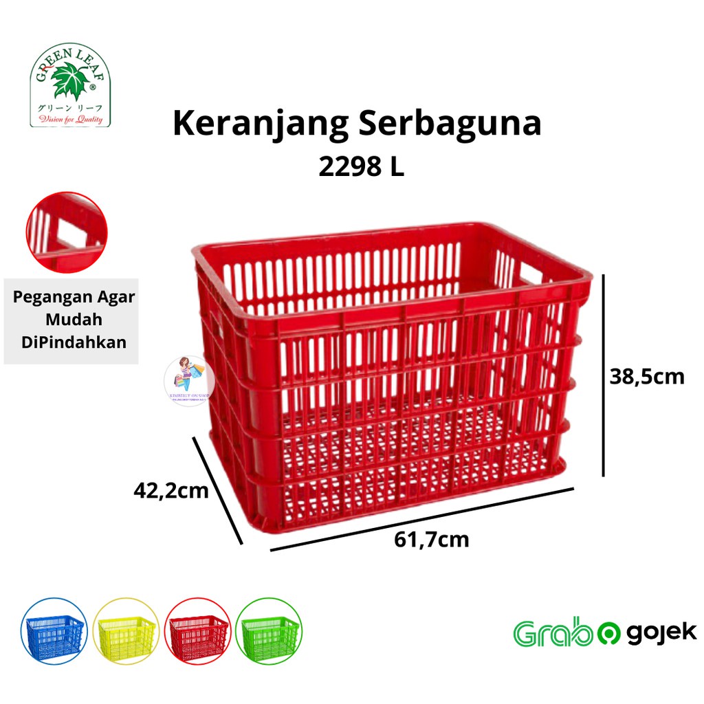 Keranjang Industri Serbaguna dan bahan plastik ini dijamin aman untuk ditaruh makanan,sayur,buah,roti, dll secara langsung Ukuran : P61,7xL42,2xT38,5cm Warna: Biru, Merah, Kuning, Hijau
